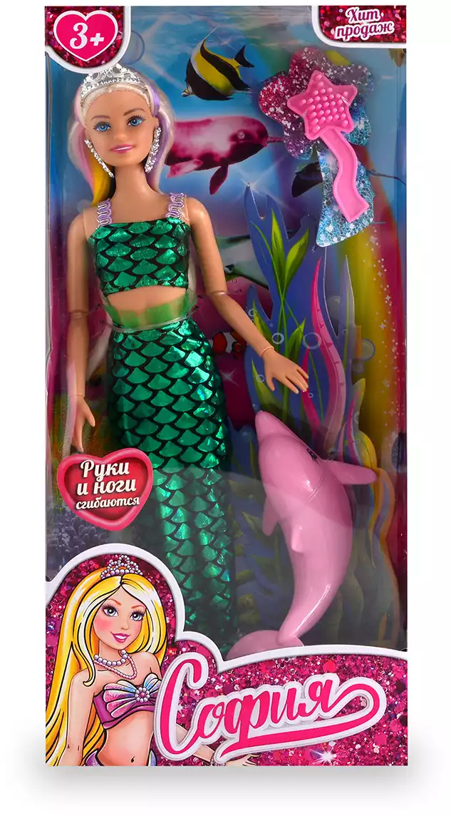 В корзинуКукла София - русалка ТМ «Карапуз» станет прекрасным подарком для вашей принцессы.Прекрасная русалка София одета в блестящий изумрудный топ, а также серебристые серьги и корону. Её зелёный хвост красиво блестит и переливается. Одежду легко снять и надеть. С такой модной куклой девочке будет интересно и весело играть: благодаря тому, что руки и ноги куклы подвижны, им можно придать любое положение. У Софии длинные красивые волосы, которые хозяйка куклы может заплетать в разные причёски. Детально проработанный дизайн игрушки вдохновит девочку на новые игровые сюжеты.