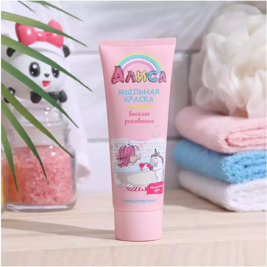 В корзинуМыльная краска «Алиса» – это очень доступное по цене универсальное средство для весёлого купания детей, которое ребенок может использовать для рисования на плитке в ванной и на себе самом. Маме останется только выдавить на ладошку малыша выбранный им цвет: малиновый, желтый или зеленый. Очень важно, что входящие в состав мыльных красок красители – пищевые. Значит – абсолютно безвредны для детей. Да и состав в целом, как и положено в детской продукции – гипоаллергенный. Родителям также полезно будет знать, что мыльная краска «Алиса» легко смывается водой.