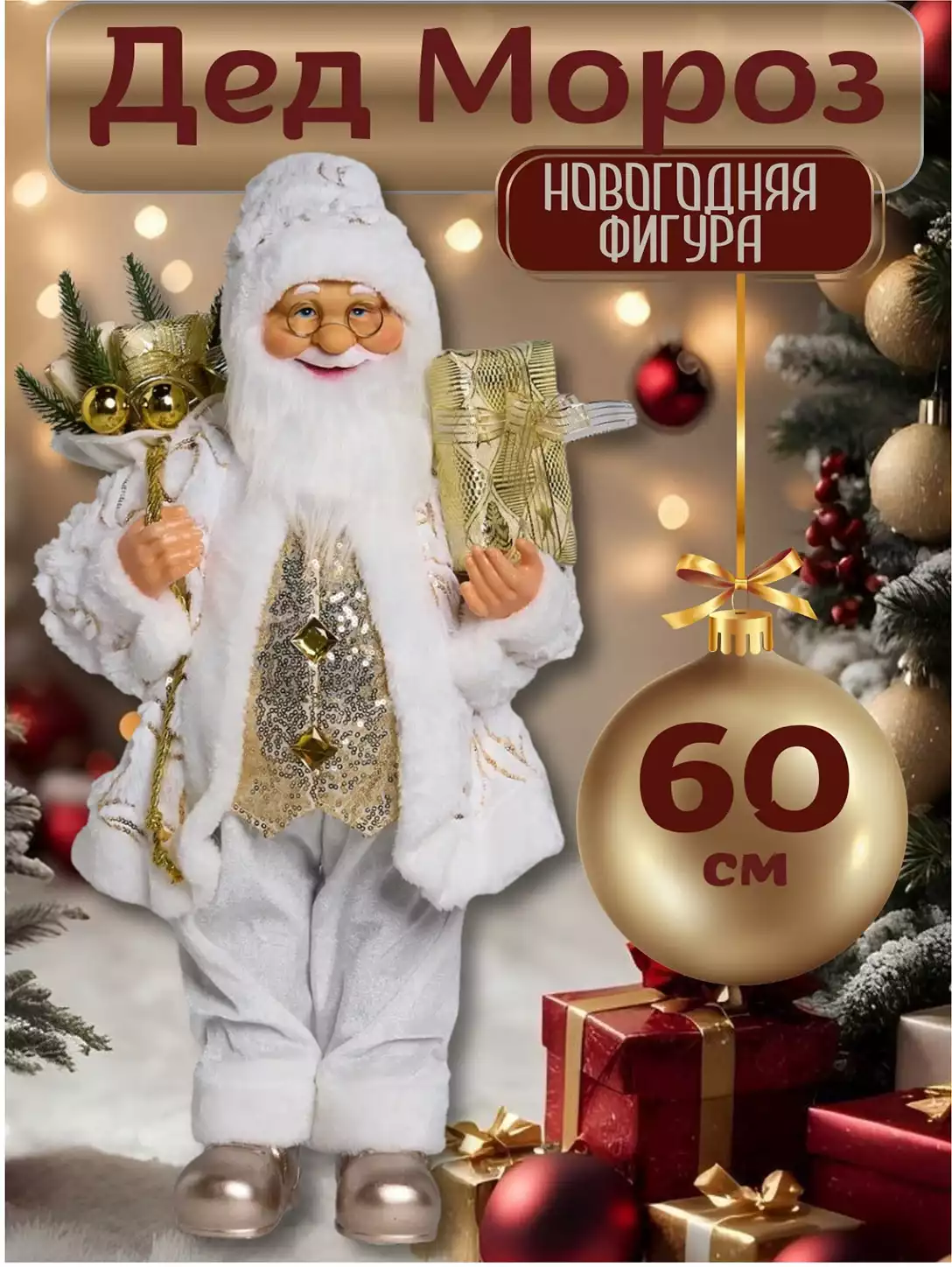 - новогодняя фигура санта-клаус 60 см в белом с золотом ys-21013b
