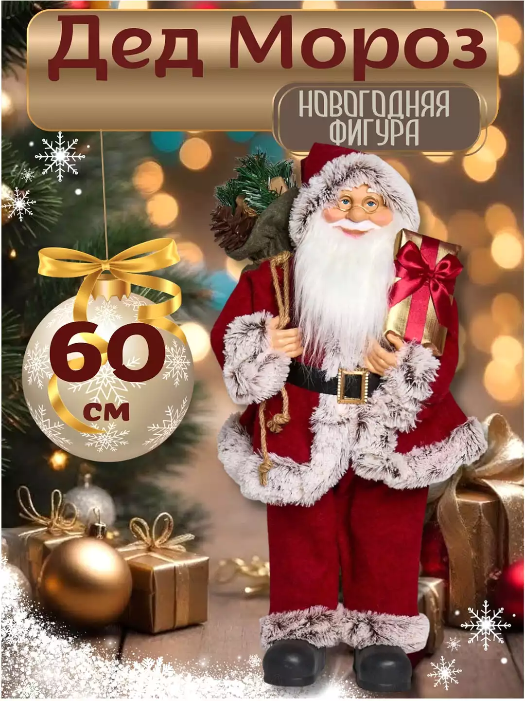 Новогодняя фигура Санта-Клаус 60 см в красном с подарком YS-201023B