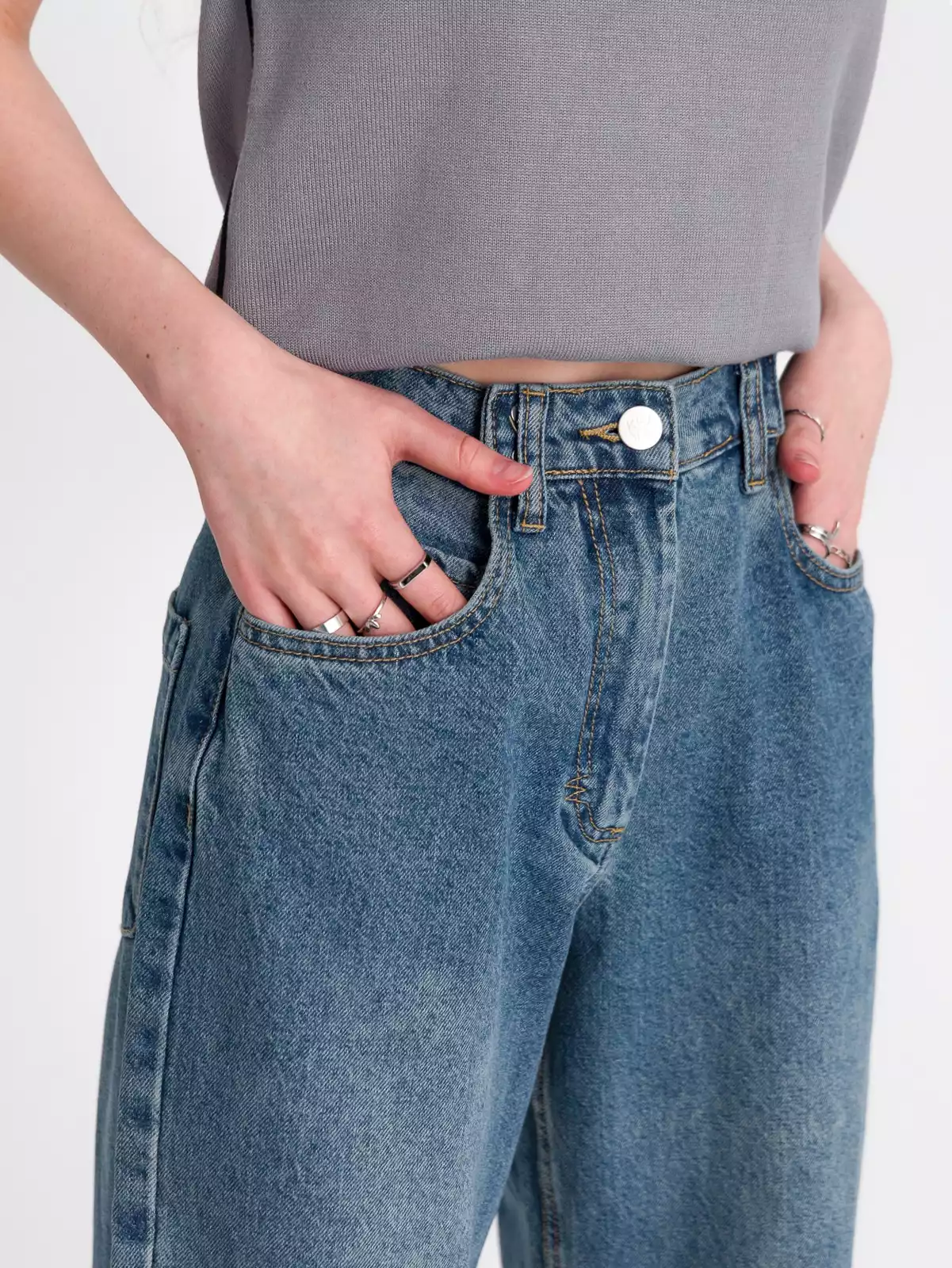 Джинсы с завышенной талией и регуляцией на поясе KEANU